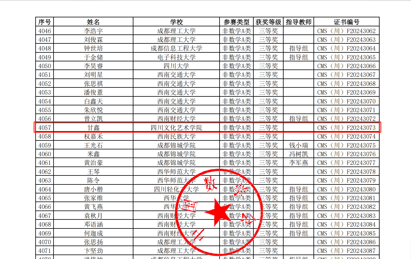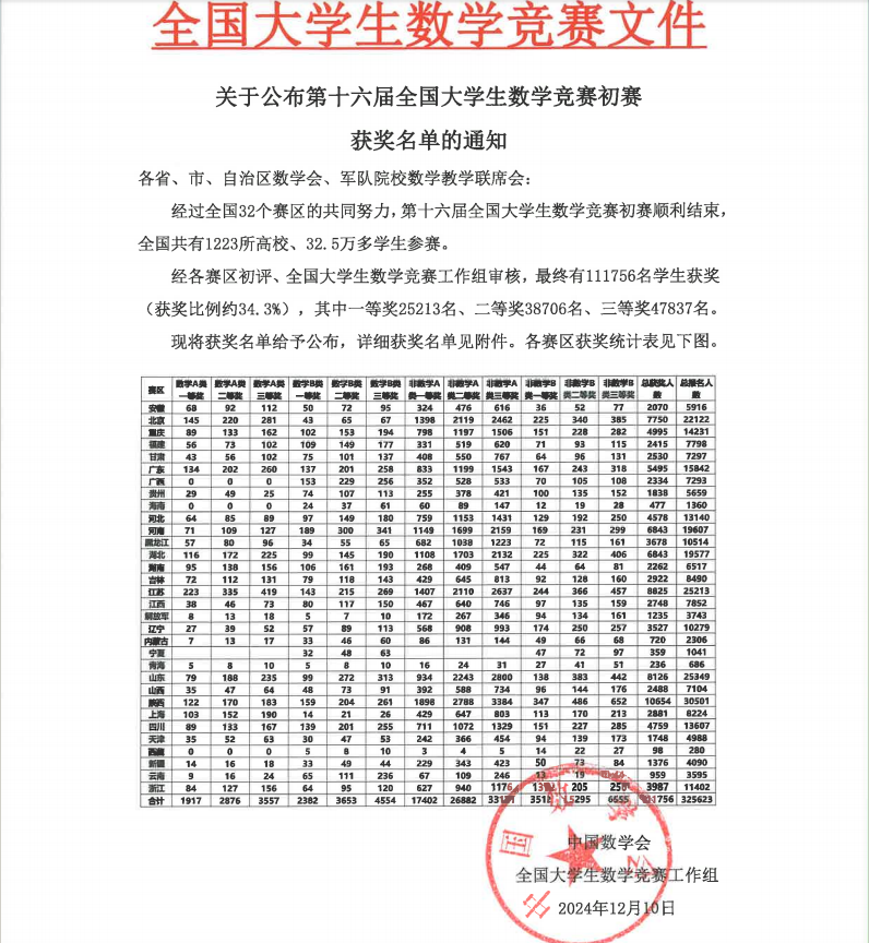 近日,第十六届全国大学生数学竞赛初赛顺利结束。据悉,此次初赛全国共有1223所高校、32.5万多学生参赛。在此次竞赛中,学院高度重视,精心准备,组织学生首次参加全国大学生数学竞赛。经过激烈角逐,数据科学与大数据技术专业甘鑫同学荣获第十六届全国大学生数学竞赛(非数学A类)三等奖。