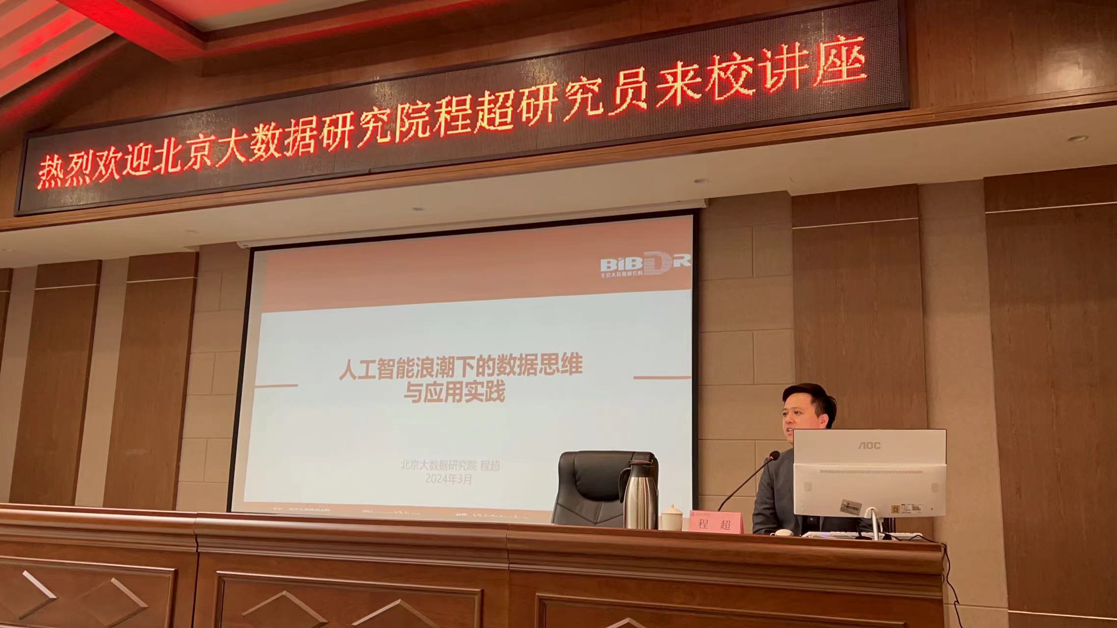 在当今社会快速发展的时代背景下,越来越多的行业主动探索和利用大数据与人工智能技术,为了让数据科学与大数据技术专业同学们更好地了解大数据与人工智能技术的发展,3月5日上午,北京大数据研究院程超研究员来校为广大师生开展《人工智能浪潮下的数据思维与应用实践》专题讲座。