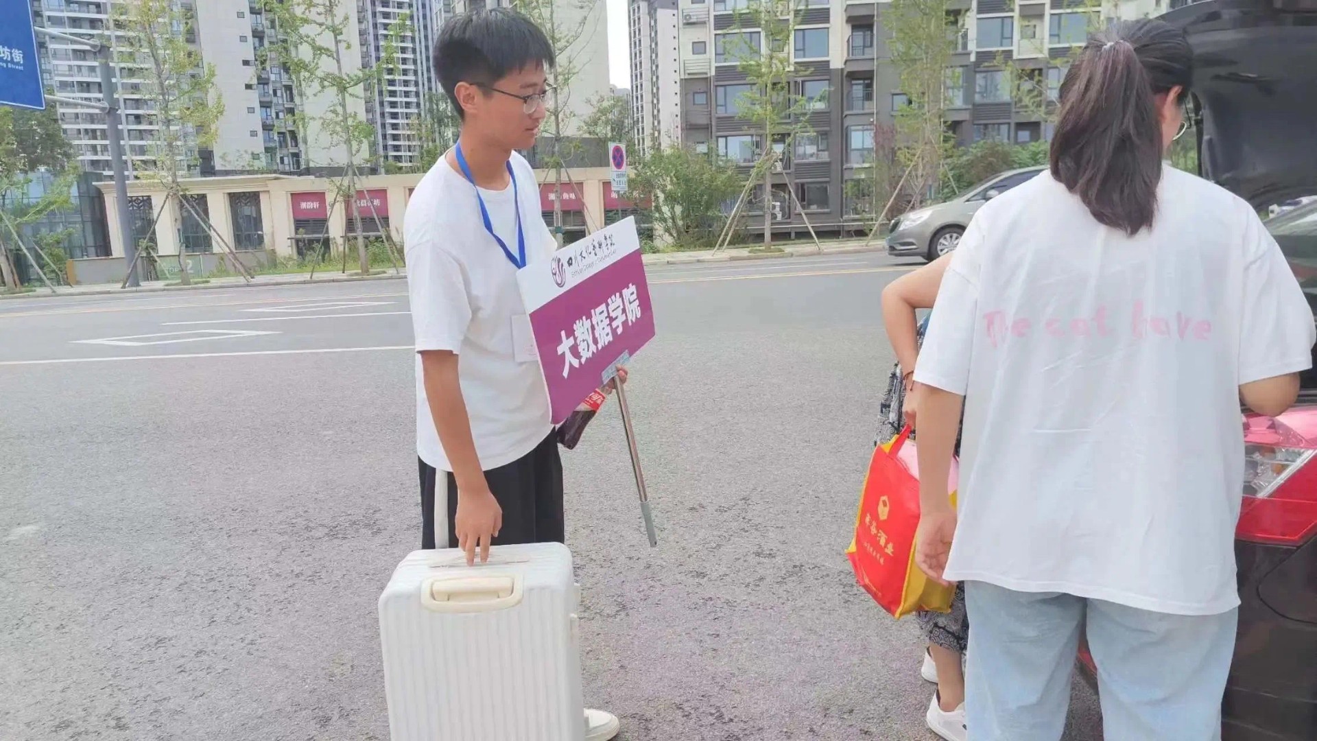 辅导员老师和学院的学长学姐们整装待发,做好了充足的准备,去迎接2023级新生。大数据学院的志愿者们积极热情接待每名新同学和陪同家长,帮助他们找到宿舍与班级,进行登记,并办理相关手续,天气状况不佳也浇不灭志愿者们的热心,他们从早上奋斗到深夜,就是为了能够保障学弟学妹们都能顺利开始大学生活。
