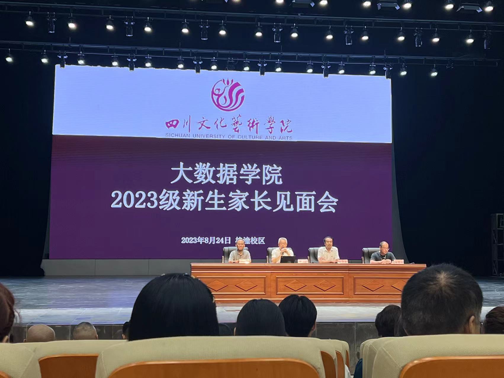 “十年寒窗,不负韶华,静待一朝,未来可期”又是一年金秋开学季,大数据学院再次迎来一批可爱的新同学。为顺利做好家校协同育人工作与新生适应性教育,帮助新生及家长进一步了解大数据学院并解答新生及家长关于大学学业和大学校园生活的相关疑问共同助力学生成长成才,8月25日下午16:30,我院于文昌剧院举办“大数据学院2023及新生家长见面会”。学校党委副书记刘立新、大数据学院院长吴斌、大数据学院副院长副书记谢东峰、大数据学院副院长郭清根、大数据学院院长助理淡靖书、大数据学院专职教师郝光旭、辅导员舒荣路、教学干事刘欣宇、行政干事潘森、大数据学院2023级本科新生及家长参加会议。会议由大数据学院副院长副书记谢东峰主持。